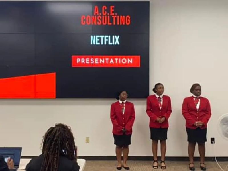 While working in the Kentucky Leaders of Tomorrow organization, my team and I worked to develop ways to improve the well known company known as Netflix. After weeks of research and development, we created a presentation that showcased the solutions we developed to help benefit the company and boost market growth. We traveled to Atlanta to present our proposal at the pitch conference held for nationals. Not only did our team score high, but we are also able to network with students around the country.