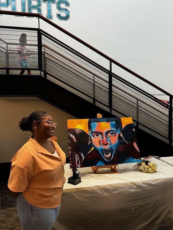 I was selected with the lovely opportunity to paint a live mural for the Muhammad Ali Musuems Juneteenth celebration. In just three hours a sketch became a masterpiece. The work was later put on display for a seasonal period at the Muhammad Ali Museum.