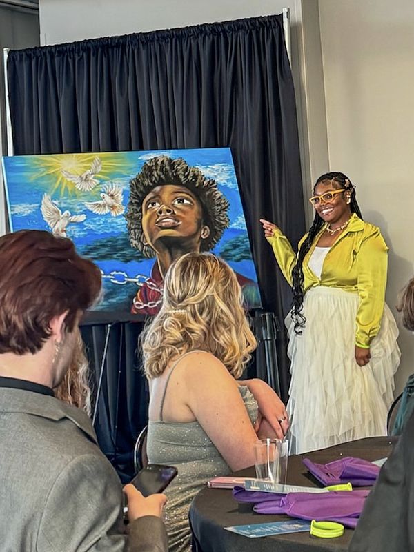 This summer I had the opportunity work with the YES Cabinet to create a mural for their National Youth Prevention Week Gala. In just seven days I cultivated a mural representing the peace found in the freedom of bondage. During the gala I had the opportunity to speak more about the message of the mural the process creating it, and my passion for painting.
